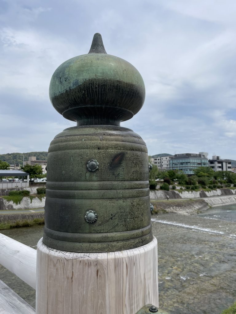 三条大橋の東側にある擬宝珠を間近で見ると、今も斜めに刻まれた刀傷を確認することができます。一見すると小さな傷ですが、当時の命を懸けた戦いを想像すると、その迫力は言葉に尽くせません。